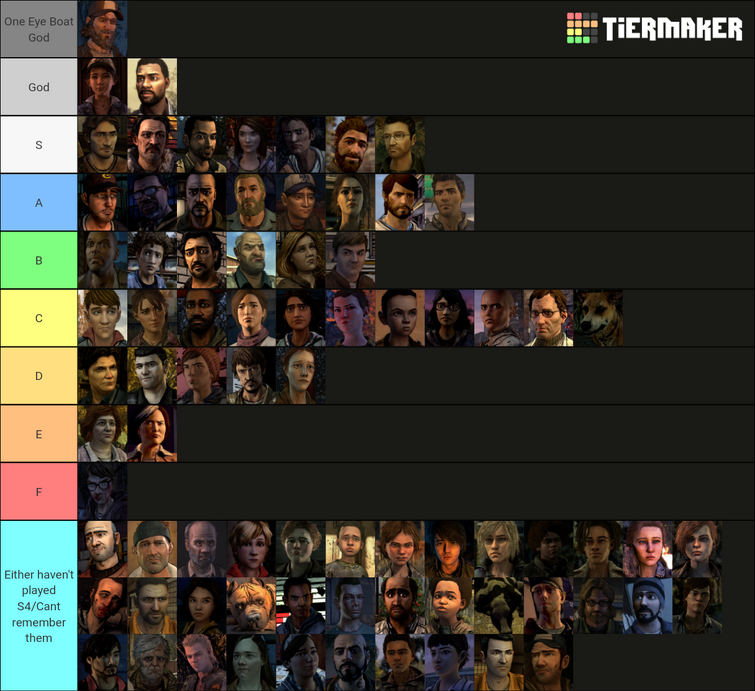 To get into S Tier the character needed at least a mean of 904810. The Walking Dead Character Tier List Try out the tier list for yourself. After years on the road facing threats living and dead Clementine must build a life and become a leader while still watching over AJ an orphaned boy and the closest thing to family she has left.